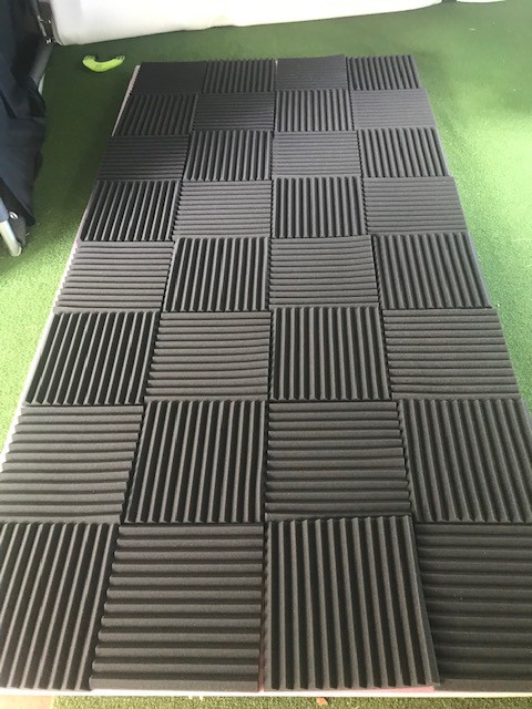 I ended up building walls with the intention of helping with sound issues, but they worked well to redirect any errant shots. I used 4'x8'x1/4" plywood, and adhered 4'x8'x1" foam insulation board and then adhered 1'x1' acoustic panels. I still use the backdrop over it to make it look a bit nicer. I added some pictures of how I built the side walls. I also added a wall for over the top of the enclosure, minus the 1/4" plywood.