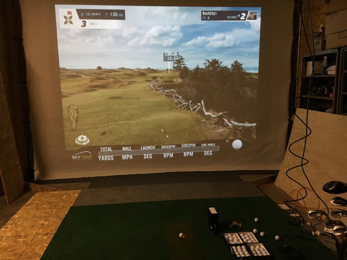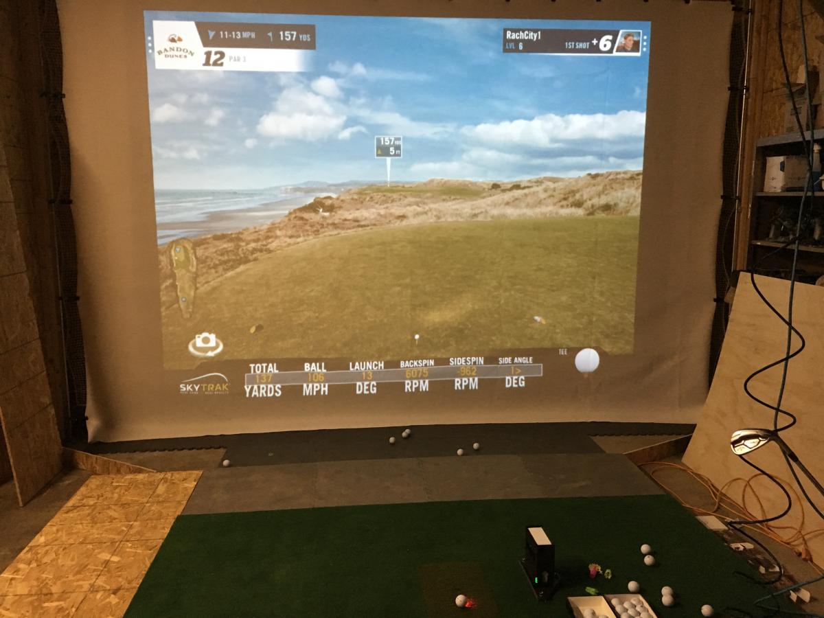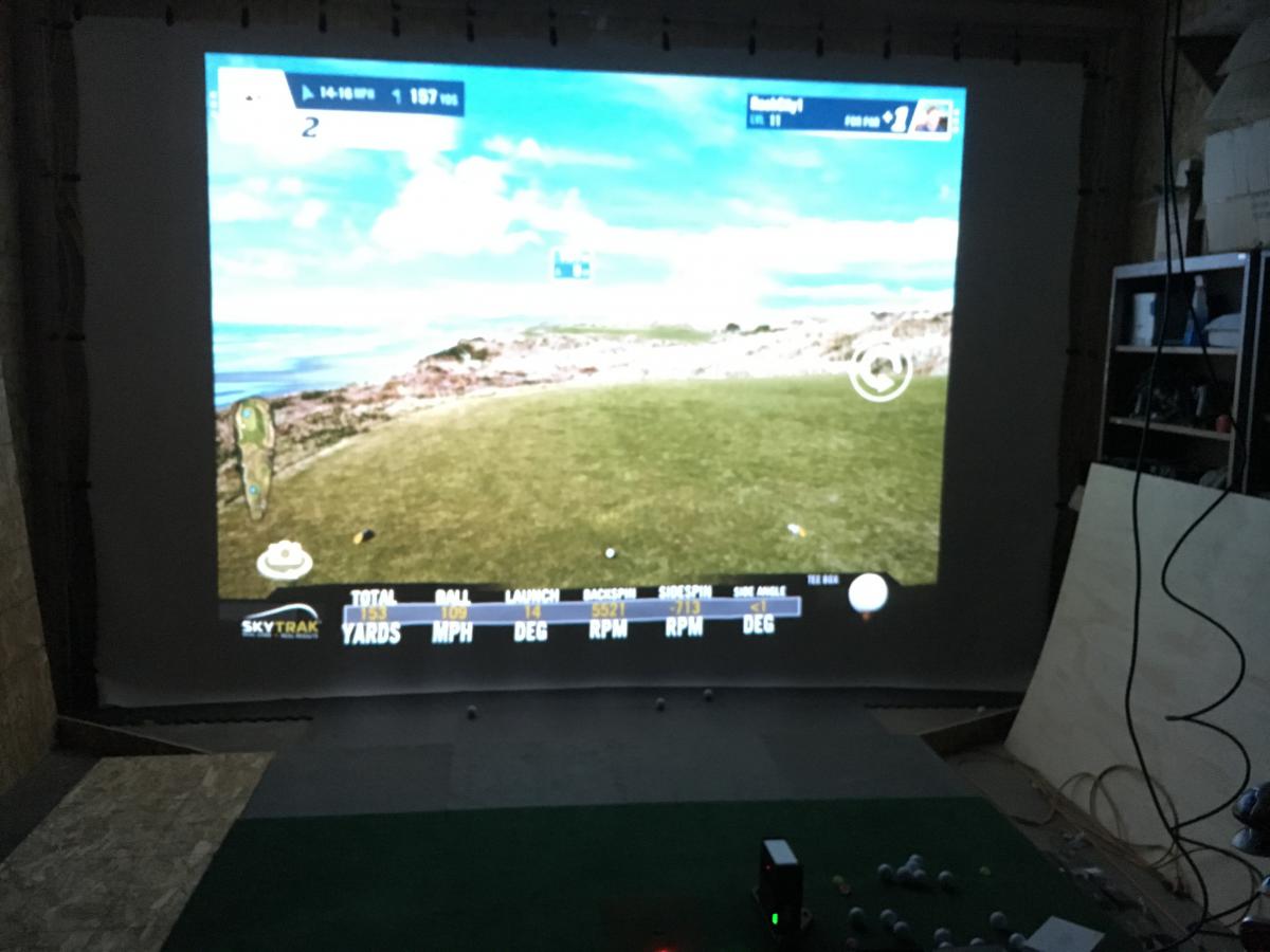 I hit off a hitting platform (12’x12’) that has a height of ~ 5” above the floor, I spaced the hitting platform about 12” from the impact screen, but hung the impact screen so it touches the ground. I calculated the projector distance to purposely project to the bottom edge of the impact screen (just lower than my hitting platform), so when standing, you will just see to the bottom edge of the projected image (hoping to give a more immersive/realistic, as if the hitting platform feeds into the image (once fully complete)) without a visible gap below.