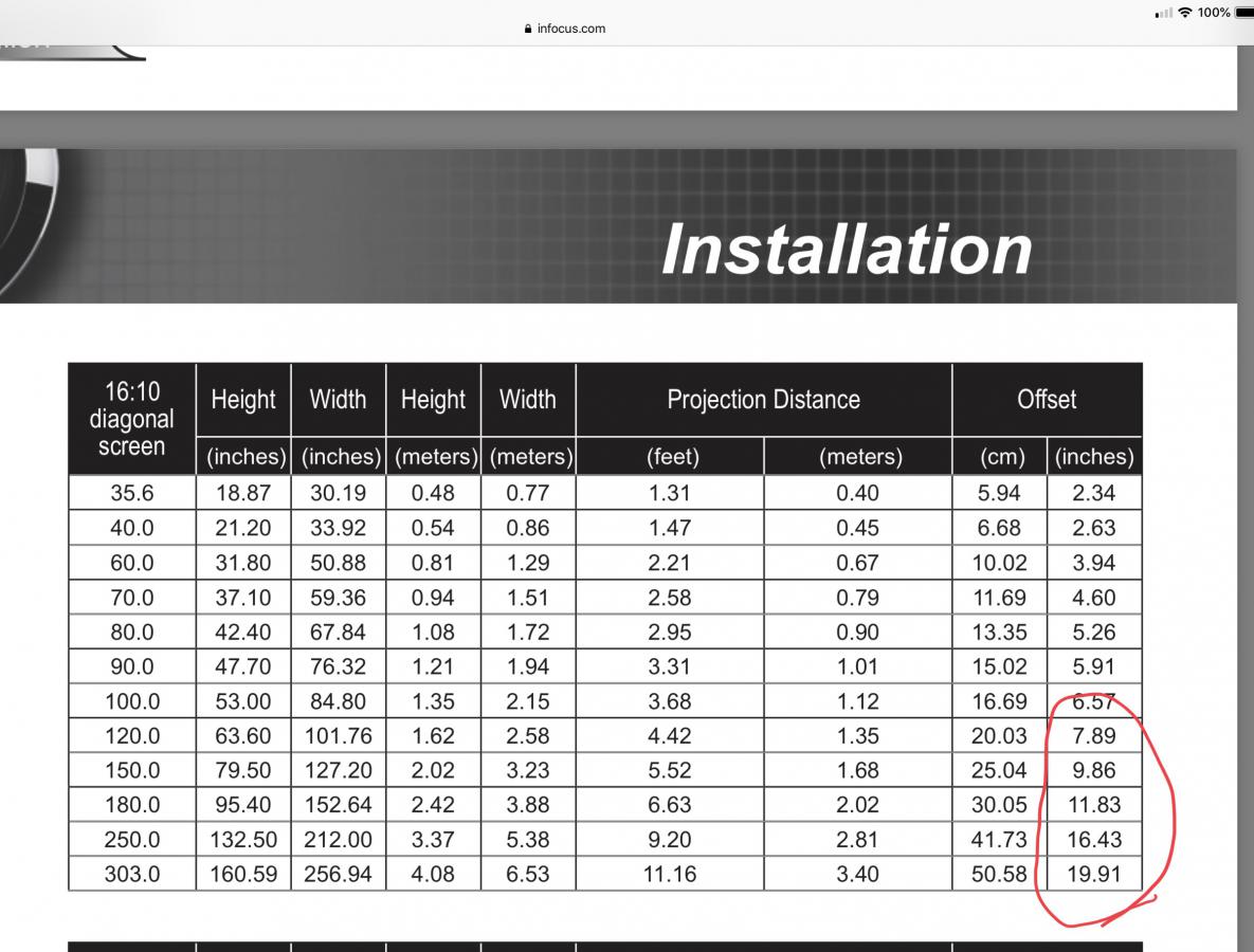 I think 21” is what I calculated my distance of the lens from the ceiling needed to be. Apologies for the confusion.