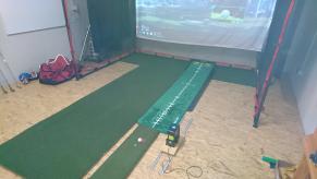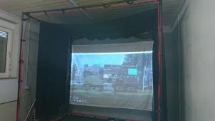 It's 5,5 meters deep, 4,5 meters wide and 3,5 meters high. The Cage is 3x3 meters and 0,5 meters off the back wall. The 4,5 meters wide is just enough to hit from the Center of the Screen and the 5,5 meters is also Minimum to swing a Driver between the back wall and the 0,5 meter deep Cage 0.5 meters off the back wall. All worked out perfect. Got lucky there with all the work and $ i put into it hahahahaha