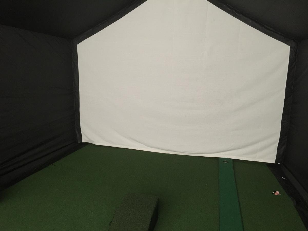 Added a couple of 2m x 4m heavy duty Tarpaulins to the sides and started to build the frame. The simulator enclosure was designed by Steve Joy at golfswingsystems (www.golfswingsystems.co.uk) to meet the dimensions of the Marquee. he just needed to know the dimensions of the internals shown by the yellow lines below and the depth of the enclosure wanted. I went for 2.5m deep, which took me past the first set of 2m side panels.