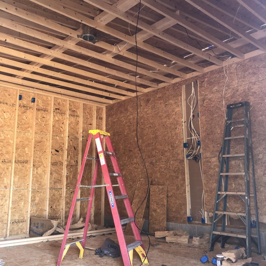 The pic that has the red circle on the wall stud is important. I had the contractors put this stud exactly 10" off the wall where the screen will attach. Matching 2x4 studs/rafters the same 10" of the wall will run across the ceiling and down the adjacent wall. These boards are what I intend to attach unistrut to, then hang the screen to the unistrut with zip ties or bungess. I figure having them give me studs right where I need them now, will alleviate the use of drywall anchors down the road. Estimating the shell to be finished mid-next week. Then onto electrical.