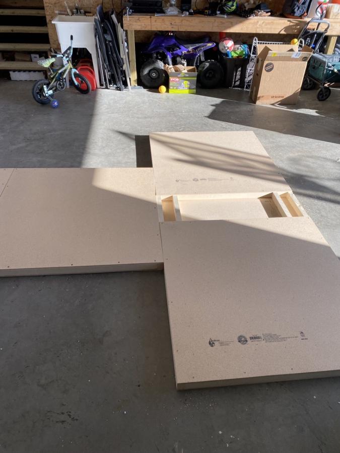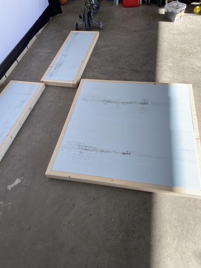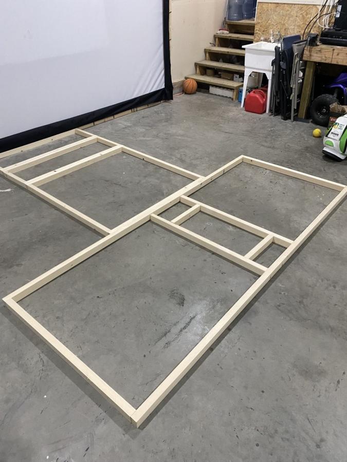 I live in Canada and my wife likes to park her vehicle in the garage in the winter so me just taking over the garage for an at home simulator wasn't going to fly. I needed to find a way to make sure it could be moved out of the way for garage parking. I landed on creating a four section hitting platform that folded up to about a foot once it's all said and done.